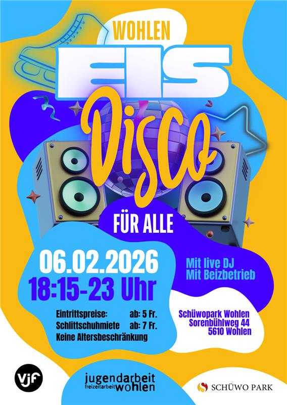 Am Freitag, 6. Februar 2026 verwandelt sich der Schüwo Park Wohlen in eine Disco auf dem Eis.